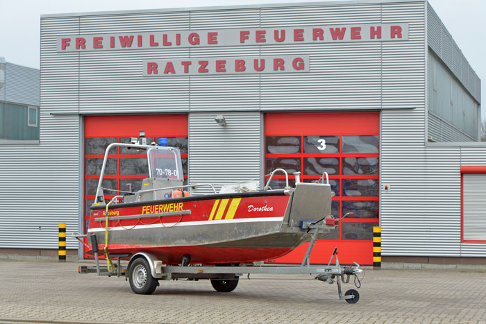 Das Mehrzweckboot „Dorothea“ ist für die Brandbekämpfung sowie für die Rettung von verunfallten Personen auf dem Wasser geeignet. Durch das Verlasten einer Tragkraftspritze kann Wasser angesaugt und über einen mobilen Wasserwerfer wieder abgegeben werden.