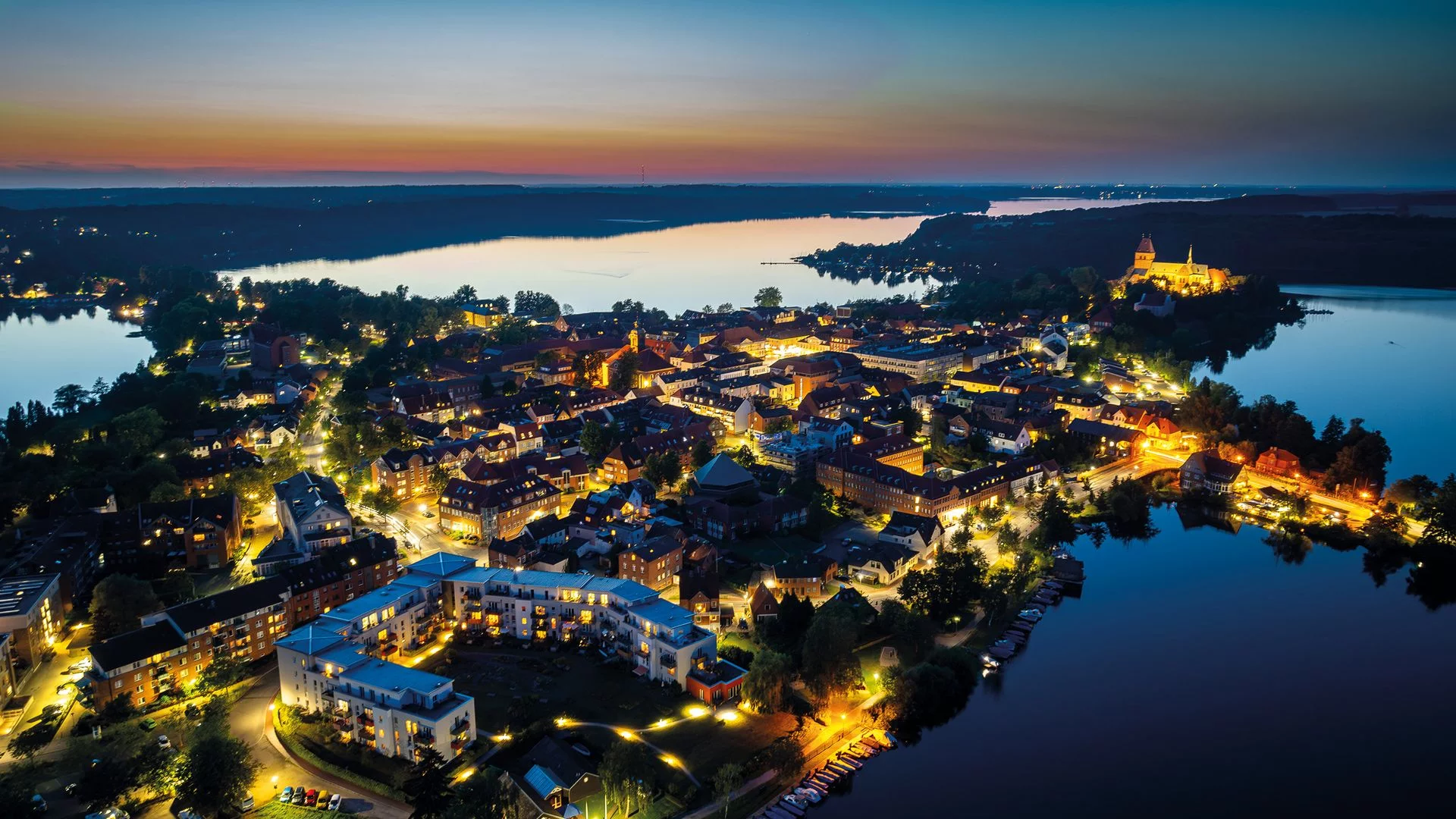 Neben der Altstadtinsel gehören auch die Stadtteile St. Georgsberg, Vorstadt und Dermin zum Stadtgebiet. Insgesamt hat Ratzeburg etwa 14.500 Einwohner.